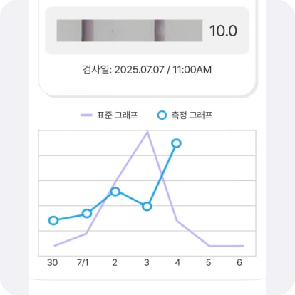 배란(LH) 테스트는 첫 소변을 피해서 매일 같은 시간대에 측정해주세요.